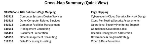 HSM Data Solutions LLC is registered under the following North American Industry Classification System (NAICS) codes, reflecting our cybersecurity, information technology, records management, and compliance-focused services.